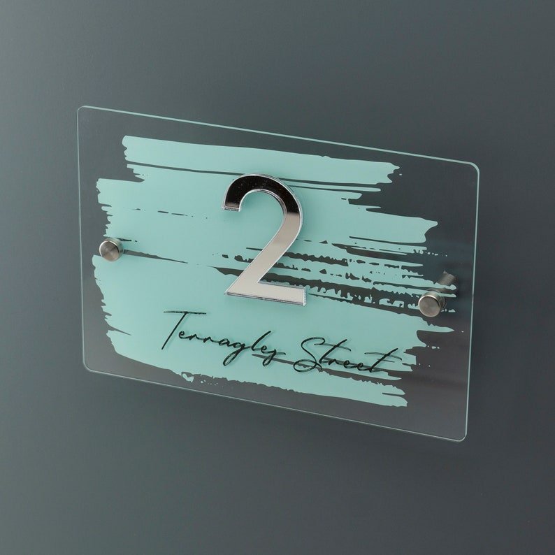 - Sleek Modern Design: The combination of a printed background with 3D mirror acrylic numbers offers a striking visual contrast that enhances any property’s appearance.