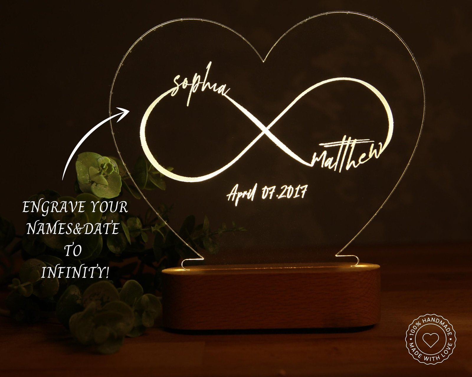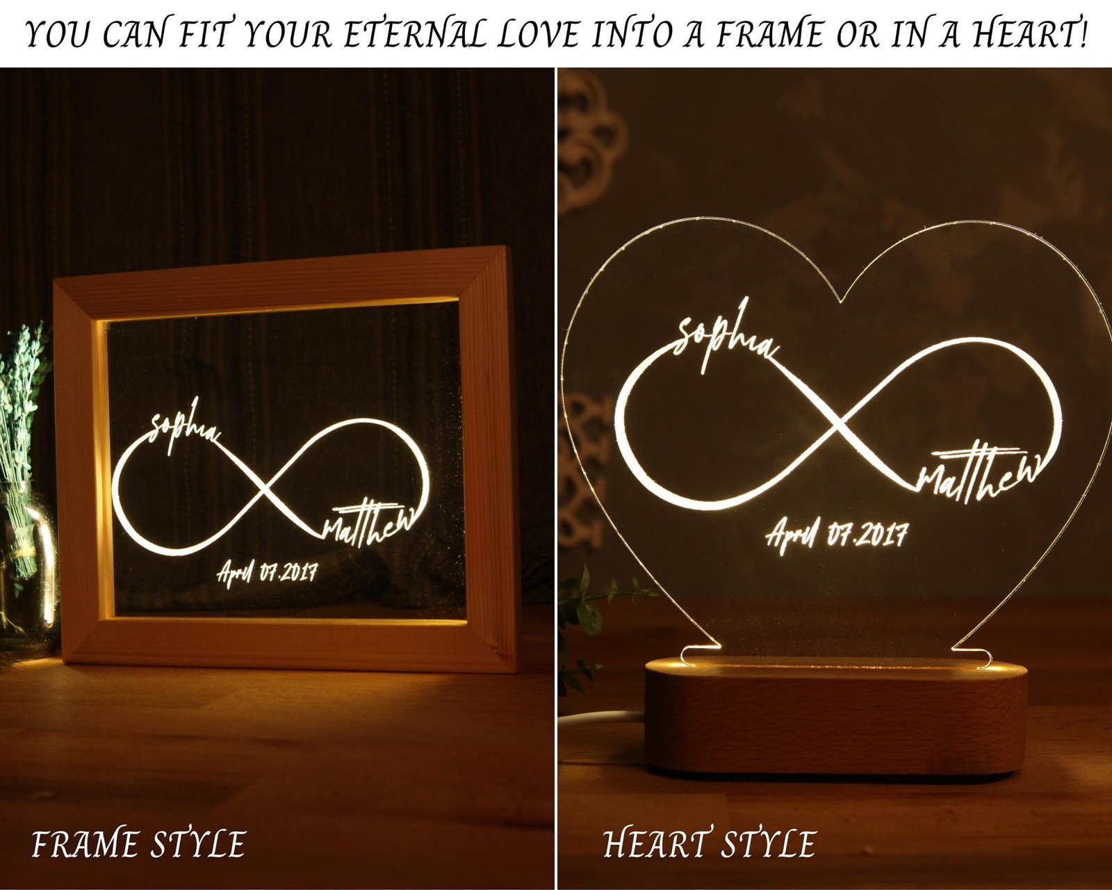 ♾️ CUSTOM INFINITY NIGHT LIGHT This night light is for those who cannot keep inside their eternal love! Just as your love illuminates your life, this lamp will illuminate your room like the sun. When your girlfriend/boyfriend/wife/husband is not with you, you will find her/his warmth in this lamp and at the same time, the warmth of your eternal love reflected by the light will help you sleep. After all, can there be a more restful sleep than sleeping in the arms of love?