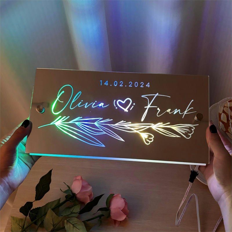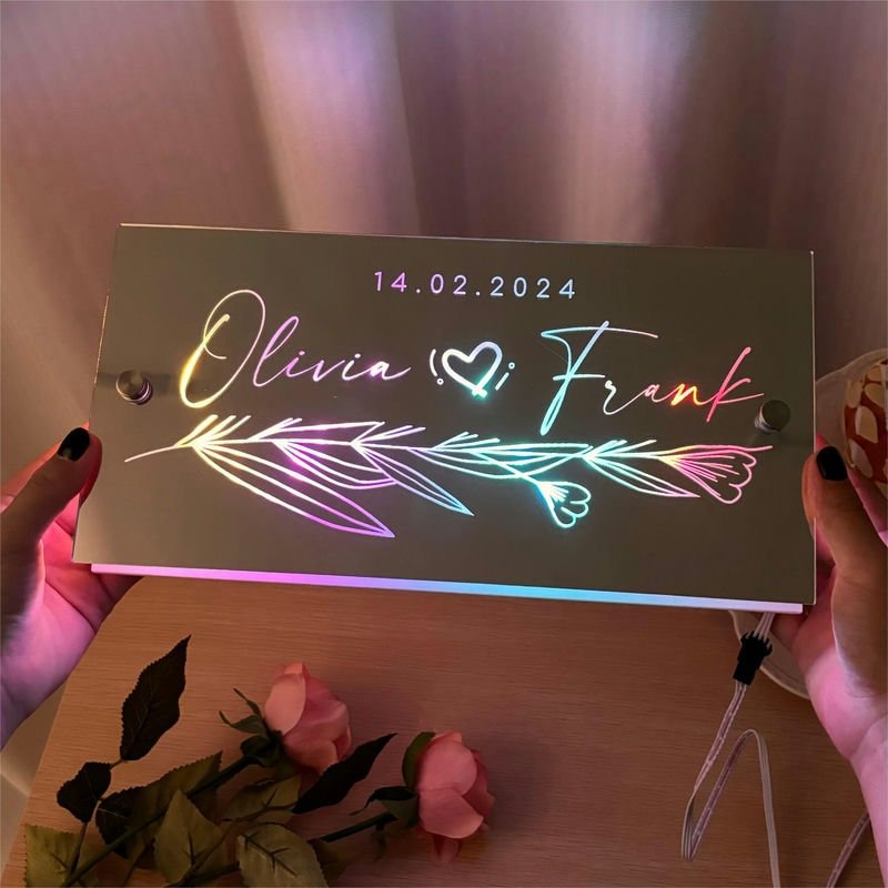 Imagine walking into a softly lit room and seeing your names or wedding date glowing on a beautiful mirrored surface. It’s not just décor—it’s your love, illuminated.